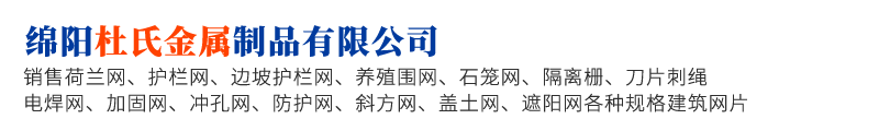 綿陽杜氏金屬制品有限公司專注篩網生產,是一家專業(yè)生產公路、鐵路、港口、學校、市政等荷蘭網、護欄網、邊坡護欄網、養(yǎng)殖圍網、石籠網、隔離柵、刀片刺繩、電焊網\加固網、沖孔網、防護網、斜方網、蓋土網、遮陽網各種規(guī)格建筑網片的廠家 防護網--用于高速公路、鐵路、機場、港口、碼頭、市政建設及養(yǎng)殖業(yè)防護用網。 勾花網--用于公園、綠地、停車場、告訴公路用網 鐵藝護欄網--用于住宅小區(qū)、企事業(yè)單位外圍護欄。 還可根據客戶要求加工定做各種規(guī)格材質的產品,保質保量高效的滿足客戶的各種需求...